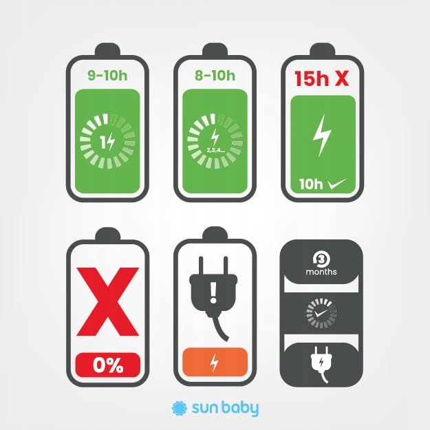 1. Pierwsze ładowanie akumulatora: 9-10 godzin