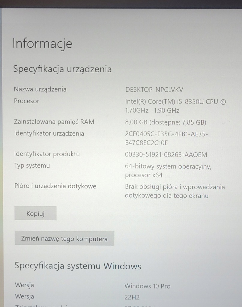 Laptop jest używany i posiada ślady eksploatacji, zdjęcia w galerii