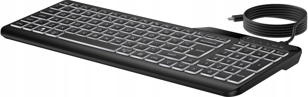 General Product Safety Regulation (GPSR) URL ; przewódTakObsługiwany typ USBUSB Type-CKlawiatura wyspowaTakKolor produktuCzarnyPodświetlenieTakCechy zabezpieczeńOdporny na zalanieSegment HPBiznesRodzaj zasilaniaUSBWaga produktuWaga klawiaturyWymiary klawiatury (SxGxW)376 x 153 x 19 mmPozostałe obsługiwane systemy operacyjneChromeOSObsługiwane systemy operacyjne WindowsWindows 11, Windows 10Waga wraz z opakowaniemWysokość opakowania29,5 mmSzerokość opakowania426 mmLiczba dołączonych produktów1 szt.Karta gwarancyjnaTakPrzewodnik użytkownikaTakDołączona myszkaNieRozmiar klawiaturyPełnowymiarowy (100%)Klawiatura numerycznaTakProfil klawiaturyNiskoprofilowyHot keysTakGłębokość naciśnięcia klawisza2,5 mmZastosowanieBiuroInterfejs urządzeniaUSBUrządzenie wskazująceNieSposób łącznościPrzewodowyIlość hotkeys20Programowalne hotkeysTakKraj pochodzeniaChinyTyp klawiaturyMembranowaSzerokość produktu376 mmWysokość produktu19 mmGłębokość produktu153 mmHP GTIN (EAN/UPC)888182569252, 888182569351
