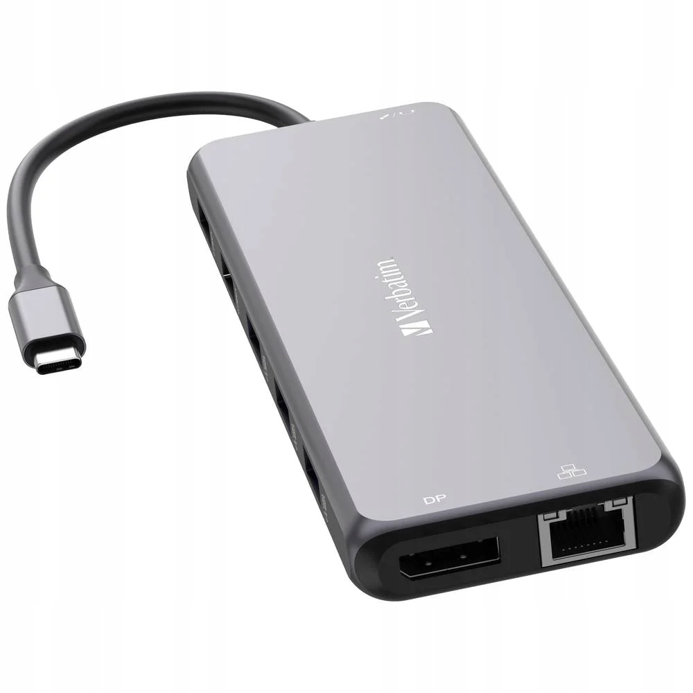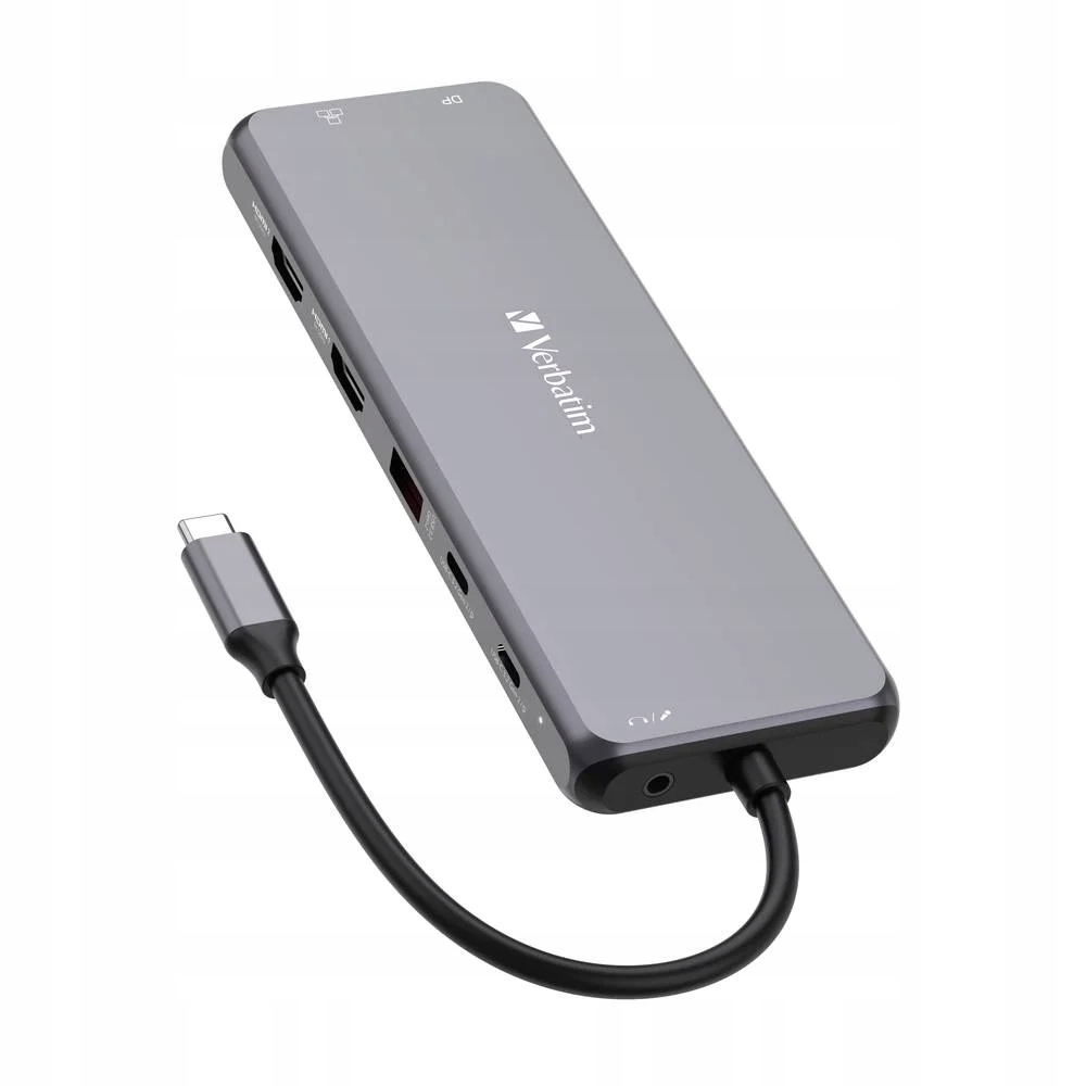 Verbatim CMH-13. Interfejs hosta: USB Type-C, Interfejsy hub: 3.5mm, DisplayPort, HDMI, RJ-45, USB 2.0, USB 3.2 Gen 1 (3.1 Gen 1) Type-A, USB 3.2 Gen 2 (3.1 Gen.... Realna szybkość przesyłania danych: 10000 Mbit/s, Maksymalna częstotliwość odświeżania: 30 Hz, Kolor produktu: Srebrny. Rodzaj interfejsu sieci Ethernet: Gigabit Ethernet. Napięcie operacyjne: 5 V, Prąd wyjściowy: 0,9 A. Obsługiwane systemy operacyjne Windows: Windows 10, Windows 11, Windows 7, Windows 8, Obsługiwane systemy operacyjne Mac: Mac OS X 10.2 Jaguar, Mac OS X 10.3 Panther, Mac OS X 10.4 Tiger, Mac OS X 10.5 Leopard, Mac OS X..., Pozostałe obsługiwane systemy operacyjne: ChromeOS
