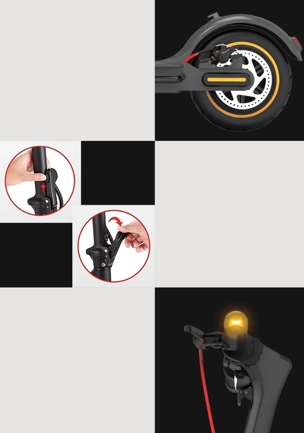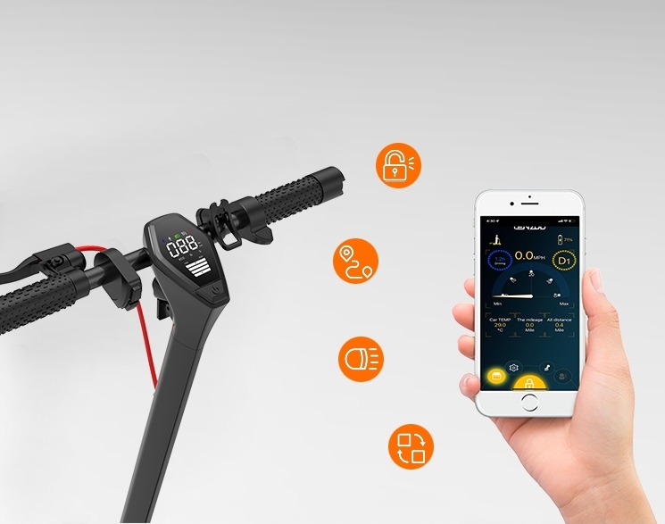 Blokowanie/odblokowywanie hulajnogi/przełączanie prędkości/Kierownica/Światła przednie/Monitorowanie podróży