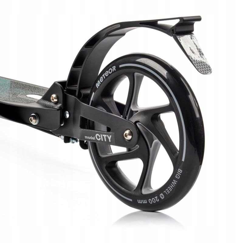 - Dodatkowo pojazd został wyposażony w błotniki chroniące przed ochlapaniem, jeśli zaskoczy Cię deszcz a tylny posłuży jednocześnie za hamulec.