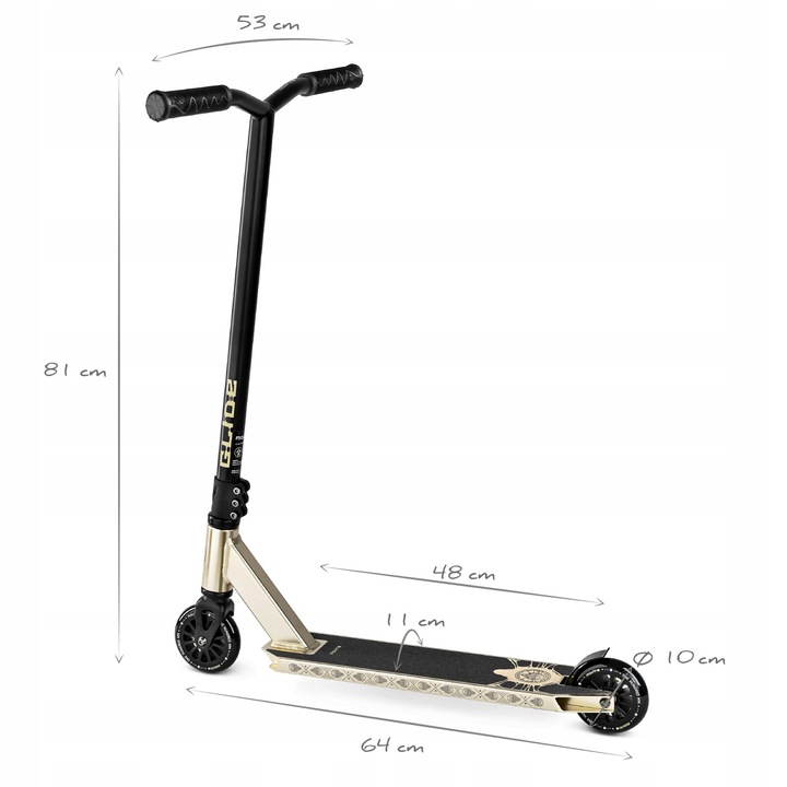 Nasza hulajnoga to połączenie wyjątkowej lekkości (zaledwie 3,3 kg) z solidną konstrukcją, zapewniającą bezpieczną jazdę nawet podczas najbardziej wymagających trików. Teraz dostępna w eleganckich kolorach: czarnym i złotym, co dodaje jej wyjątkowego stylu i charakteru.