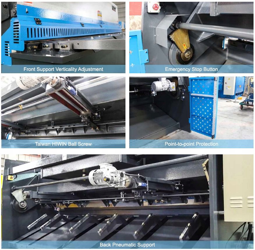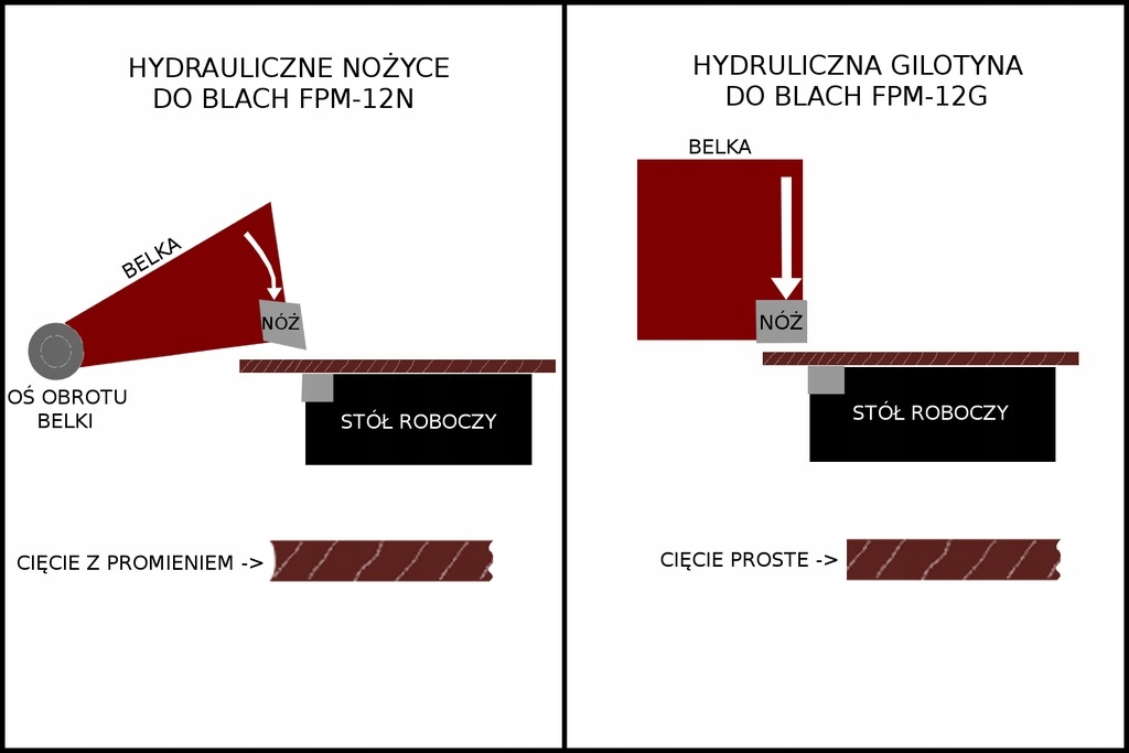 4. Hydrauliczne Nożyce Do Blach są urządzeniem działającym na zasadzie wahliwej górnej belki, która przesuwana w dół na płytę ścinaną, odcina zadany element pozostawiają na materiale minimalny promień.