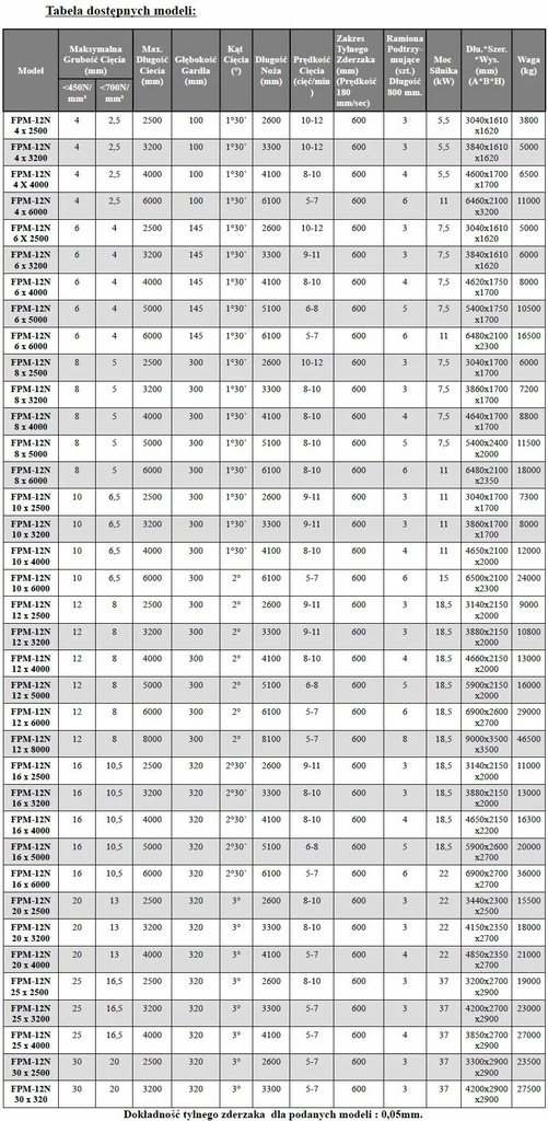 Hydrauliczne Nożyce do Blach FPM-12N-4x2500