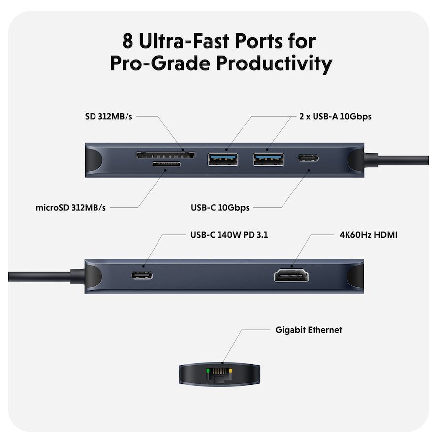HyperDrive Next 8 Port USB-C Hub z 140W | Porty Ethernet LAN (RJ-45) 1 | Il
