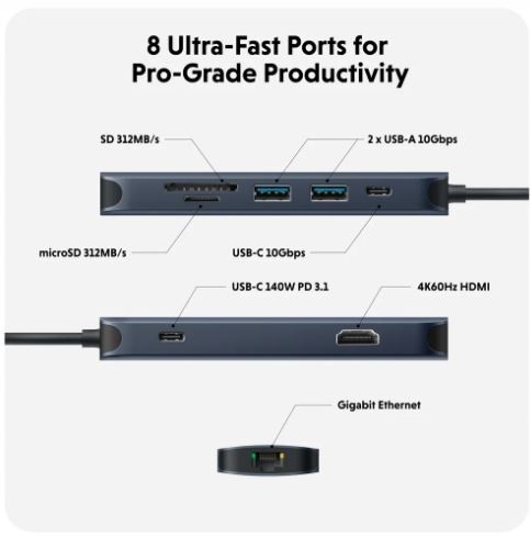 - Producer product name: HyperDrive Next 8 Port USB-C Hub, 140W
