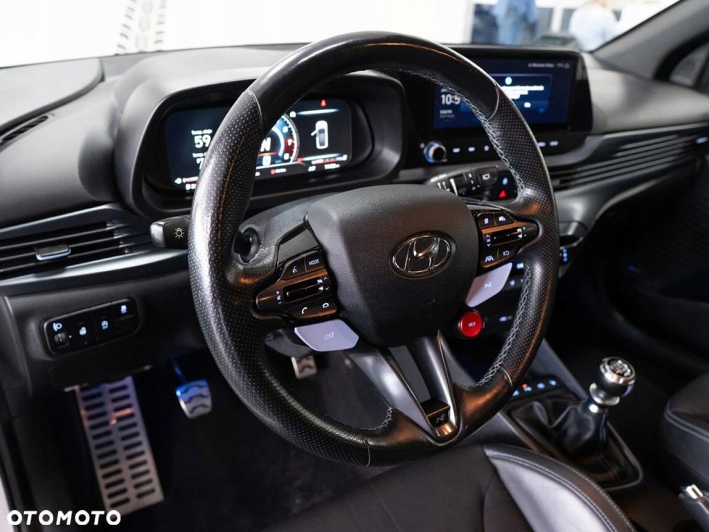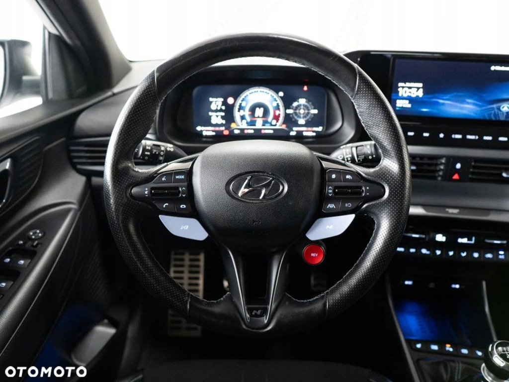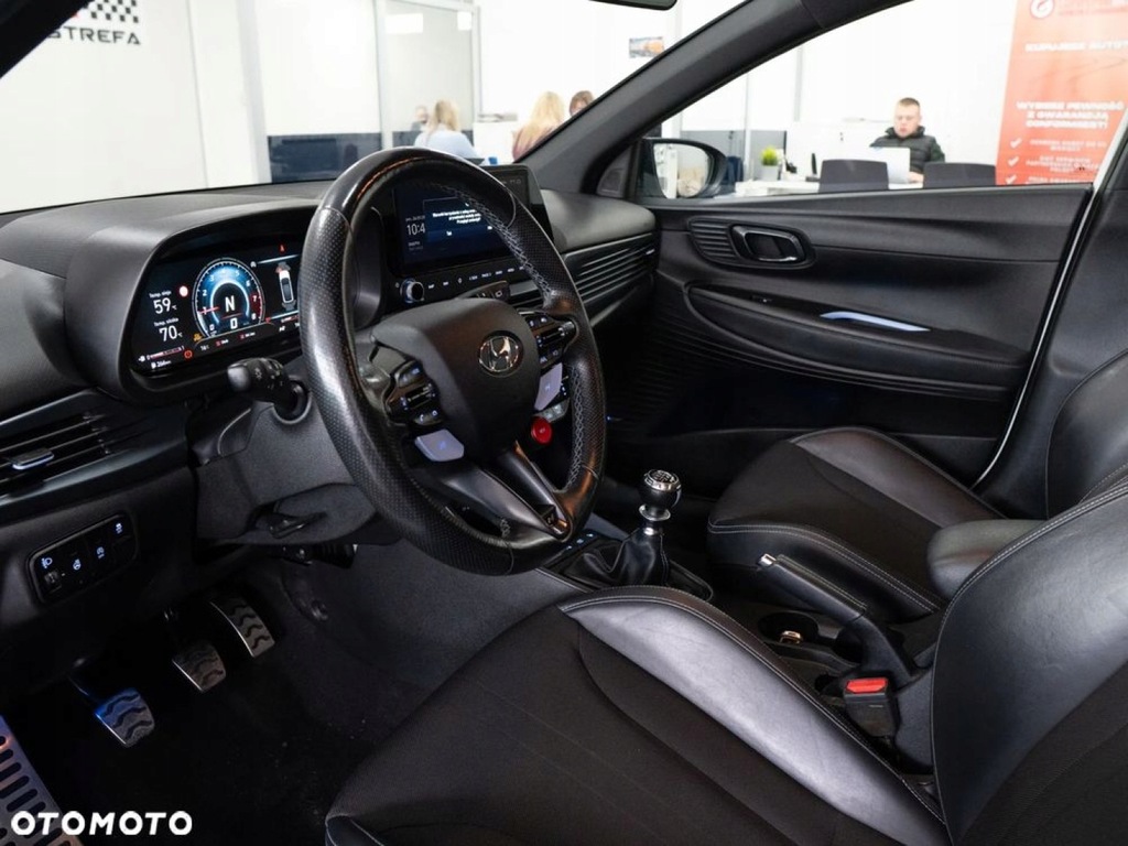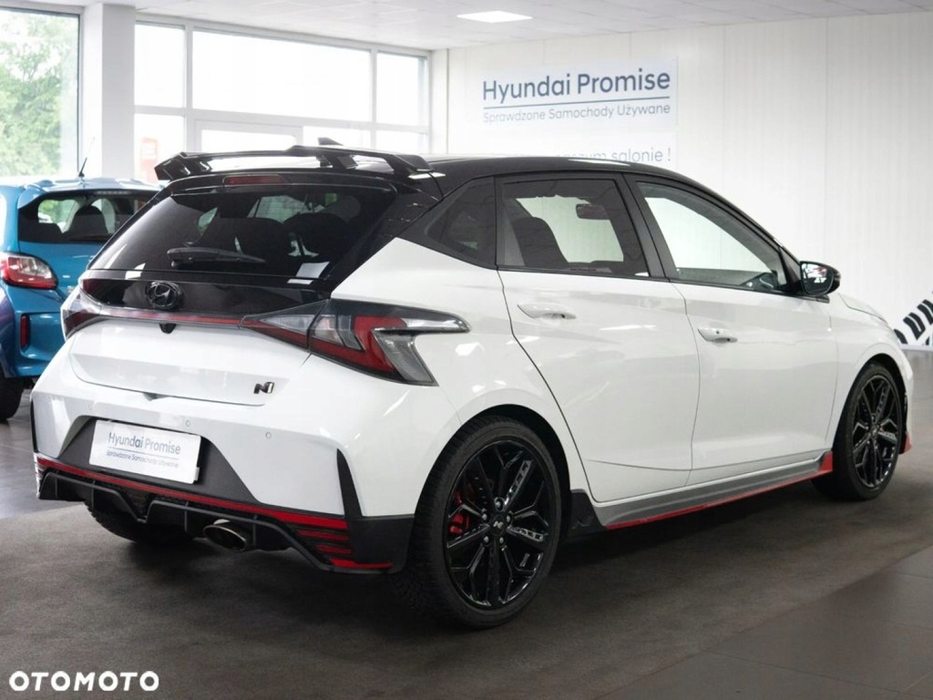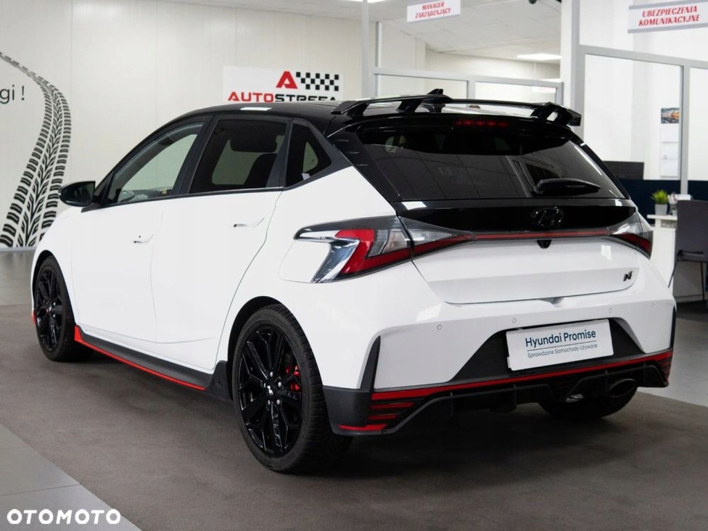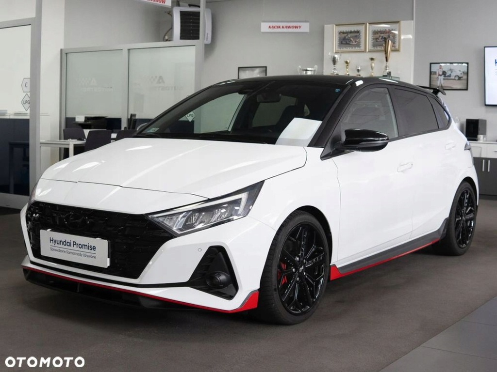 Auto Strefa - Dealer marki Hyundai we Włocławku oferuje na sprzedaż Hyundai i20 N z 2022 roku. To dynamiczny hot hatch, który łączy sportowe osiągi z codzienną funkcjonalnością. Napędzany 1.6-litrowym silnikiem T-GDi o mocy 204 KM i momencie obrotowym 275 Nm, przyspiesza do 100 km/h w zaledwie 6,2 sekundy. Wyposażony w 6-biegową manualną skrzynię biegów oraz mechaniczny dyferencjał o ograniczonym poślizgu, zapewnia precyzyjne prowadzenie i doskonałą przyczepność. Wersja Performance oferuje bogate wyposażenie, w tym 18-calowe felgi, sportowe fotele, system multimedialny z ekranem 10,25 cala, nawigację, system audio Bose oraz zaawansowane systemy bezpieczeństwa. Dzięki agresywnej stylistyce, niskiej masie własnej (ok. 1200 kg) i sportowemu zawieszeniu, i20 N dostarcza niezapomnianych wrażeń z jazdy, zarówno na torze, jak i w codziennym użytkowaniu.