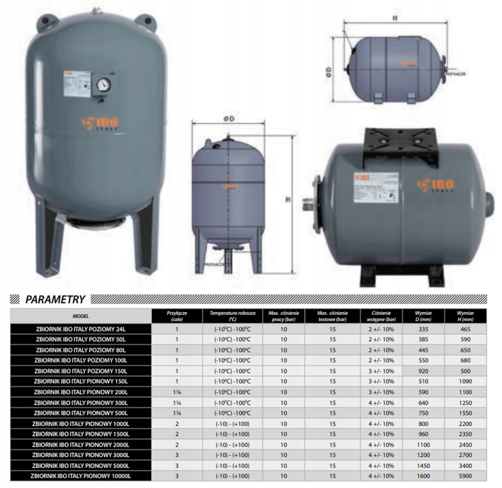 Płaszcze zbiorników GBV mają grubość 1,1mm (24L i 50L) lub 1,3mm (80L, 100L oraz 150L), a wyprodukowane we Włoszech przepony EPDM mają dopuszczenie do kontaktu z wodą pitną.