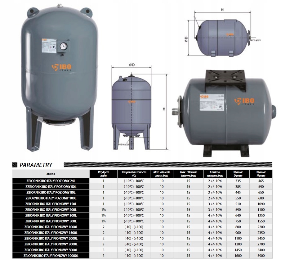 Zbiorniki przeponowe najczęściej stosuje się jako elementy zestawu hydroforowego, wszędzie tam, gdzie nie ma możliwości podłączenia się do miejskiej sieci wodociągowej. Oferowany tu sprzęt został wyprodukowany przez firmę IBO. Jest to włoskie przedsiębiorstwo, które ma swojej ofercie pompy, zbiorniki, ale także wiele innego sprzętu przydatnego przy budowie instalacji wodnej. Dzięki temu dobrze wie jakie wymagania powinny spełniać jego poszczególne elementy. Taki zestaw hydroforowy, które elementem może być opisywany tu model, to po prostu łatwość i wygoda użytkowania instancji. Wpływa na to między innymi właśnie przepona. W takim zestawie także pompa załącza się znacznie rzadziej, dzięki czemu cechuje ją dłuższa żywotność, a więc pozwala to zaoszczędzić koszty przeznaczone na jej naprawę bądź wymianę. To w niej, a nie w bezpośrednio w zbiorniku znajduje się woda. Dzięki temu cechuje go: