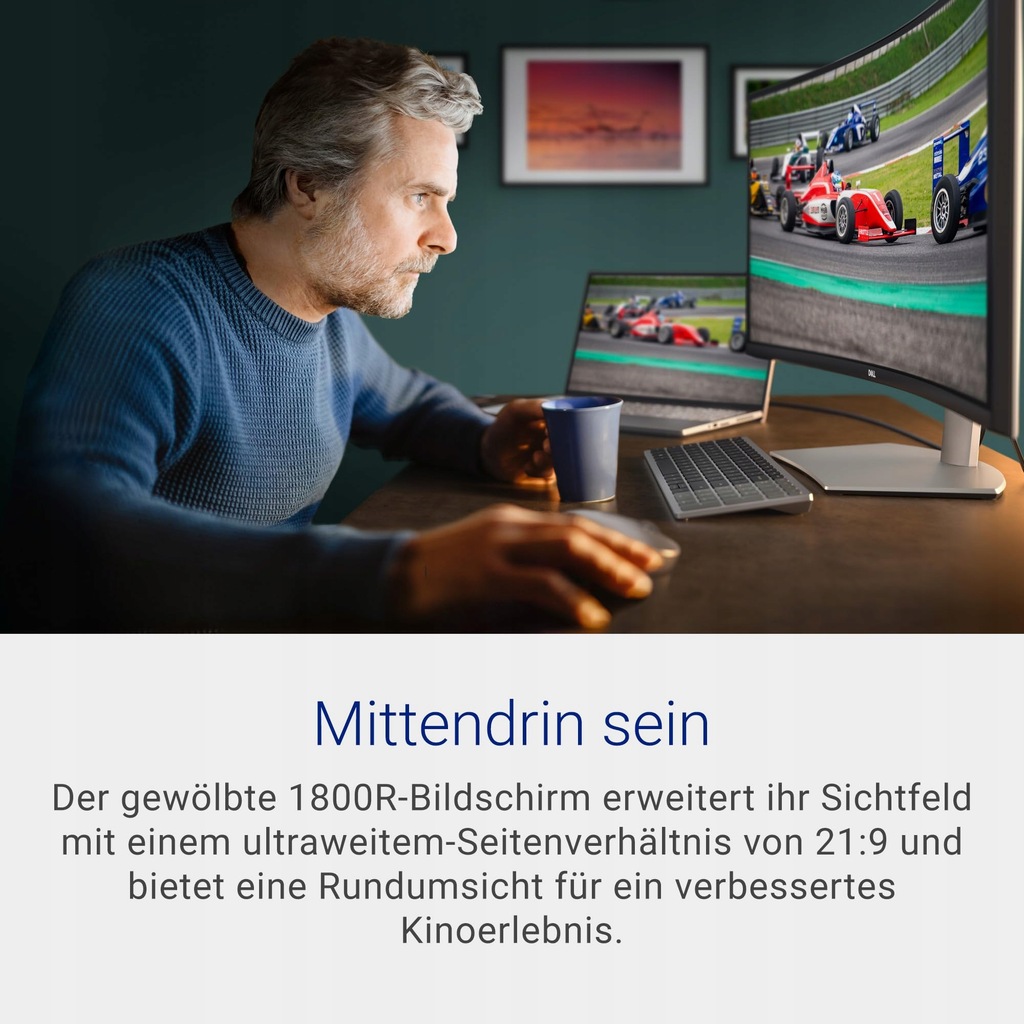 Zakrzywiony ekran 1800R poszerza pole widzenia dzięki ultraszerokim współczynnikom proporcji 21:9, zapewniając widoczność we wszystkich kierunkach i lepsze wrażenia kinowe.