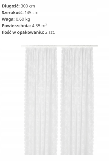IKEA SPETS FIRANKA FIRANA KREMOWA 145X300 ALVINE