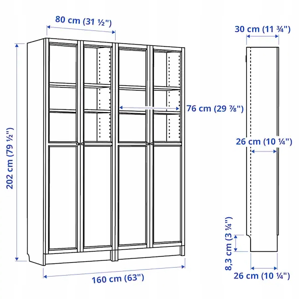 IKEA BILLY OXBERG Regał okl brzoza 160x30x202 cm