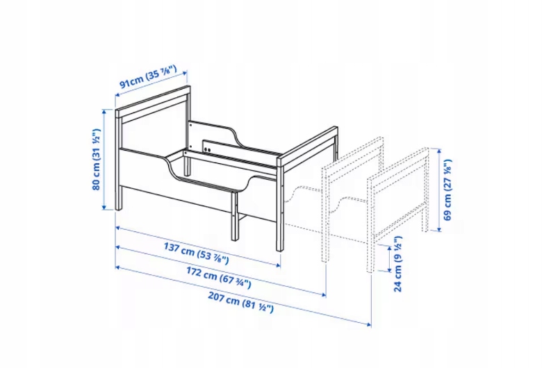 - Regulowana długość - łóżko „rośnie" razem z dzieckiem.
