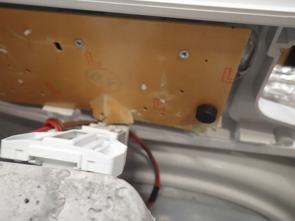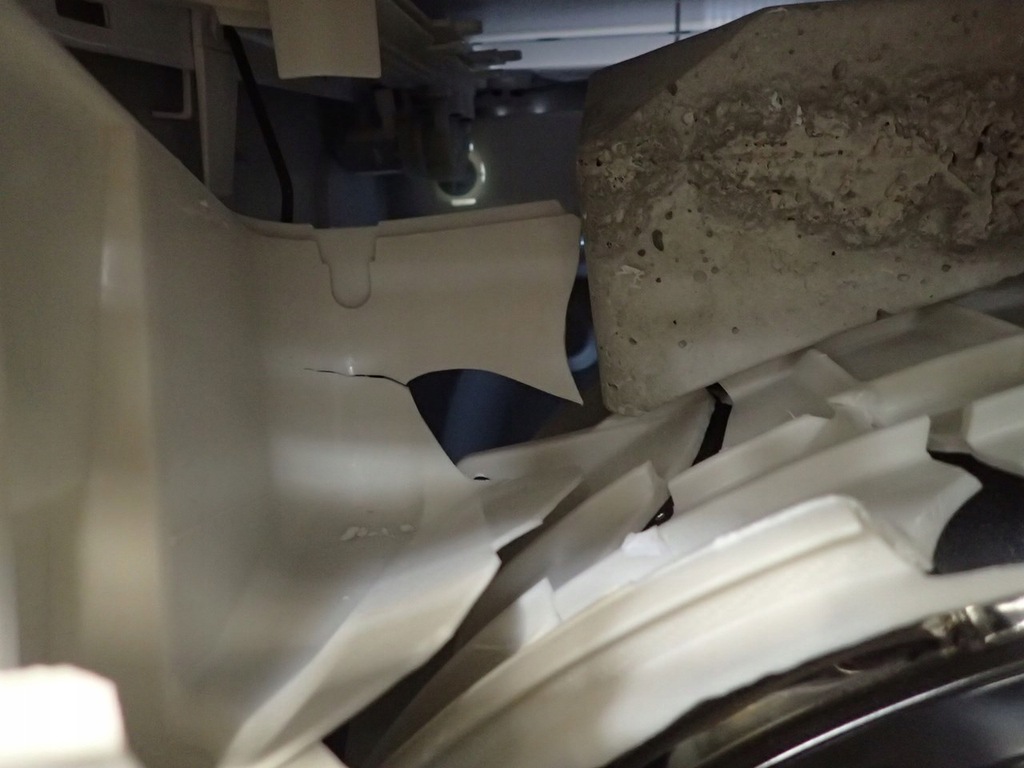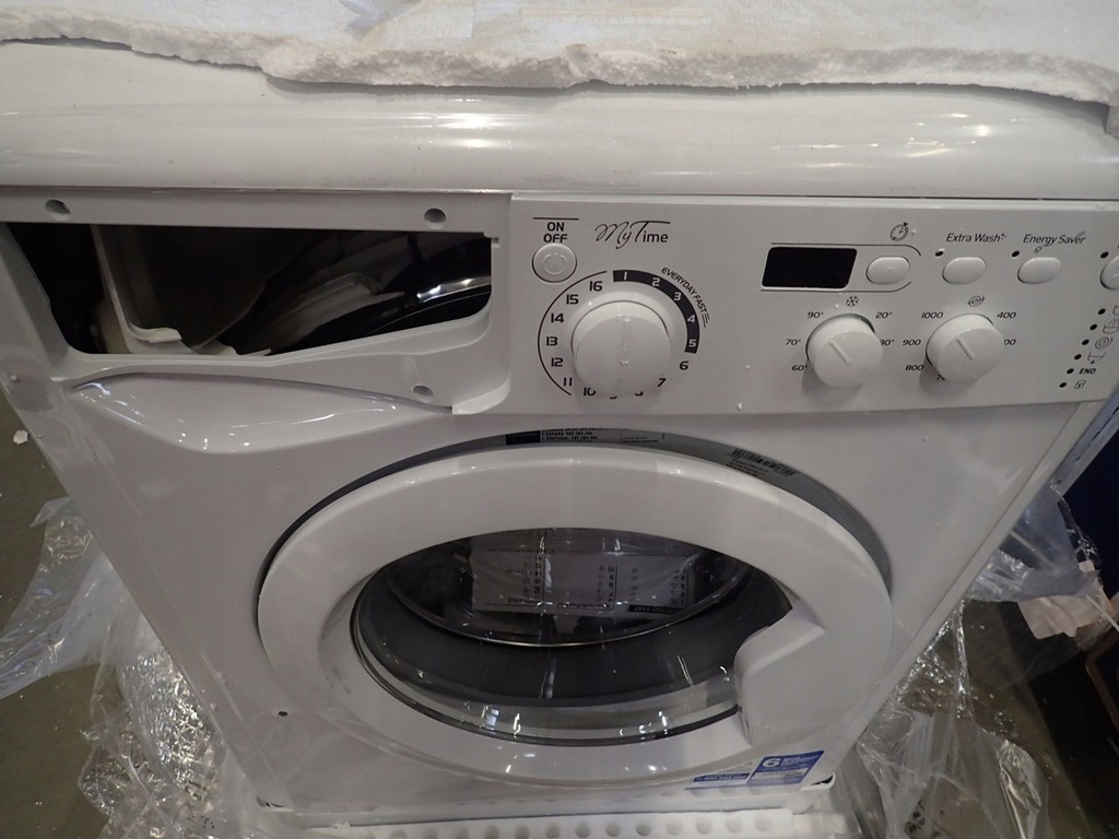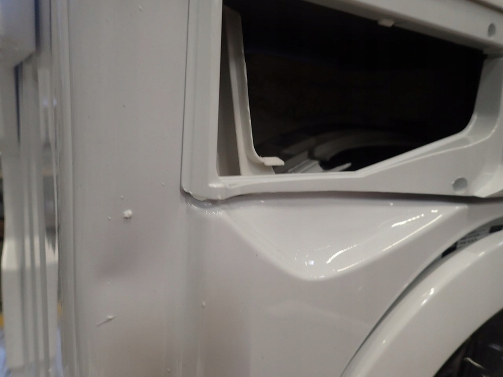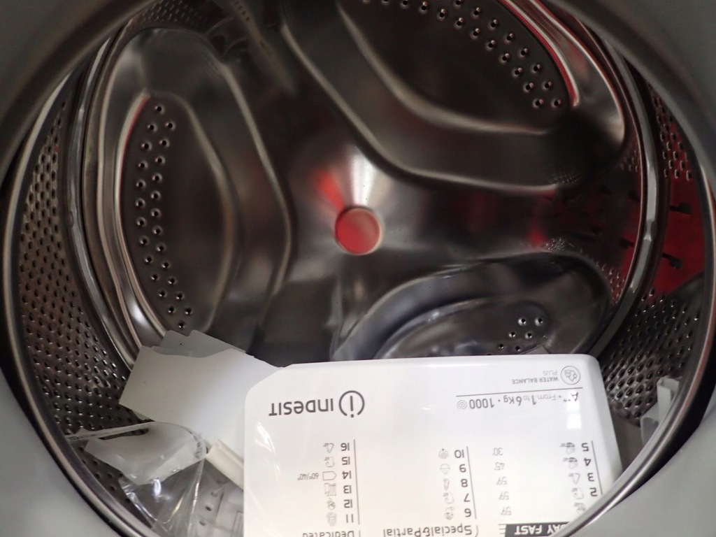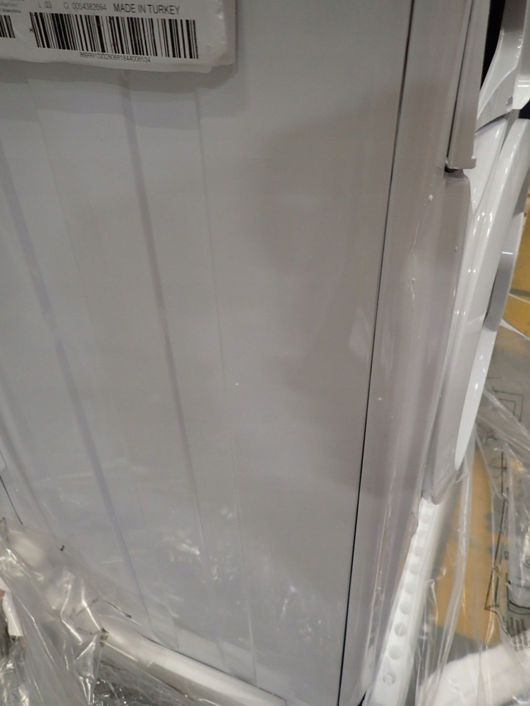 Stan produktu: Nieużywany, posiada uszkodzenie mechaniczne - pęknięty blat, pęknięta osłona bębna, liczne wgniecenia na froncie, tylnej części i bokach obudowy, wyrwany i połamany pojemnik na proszek, wyrwany blat.