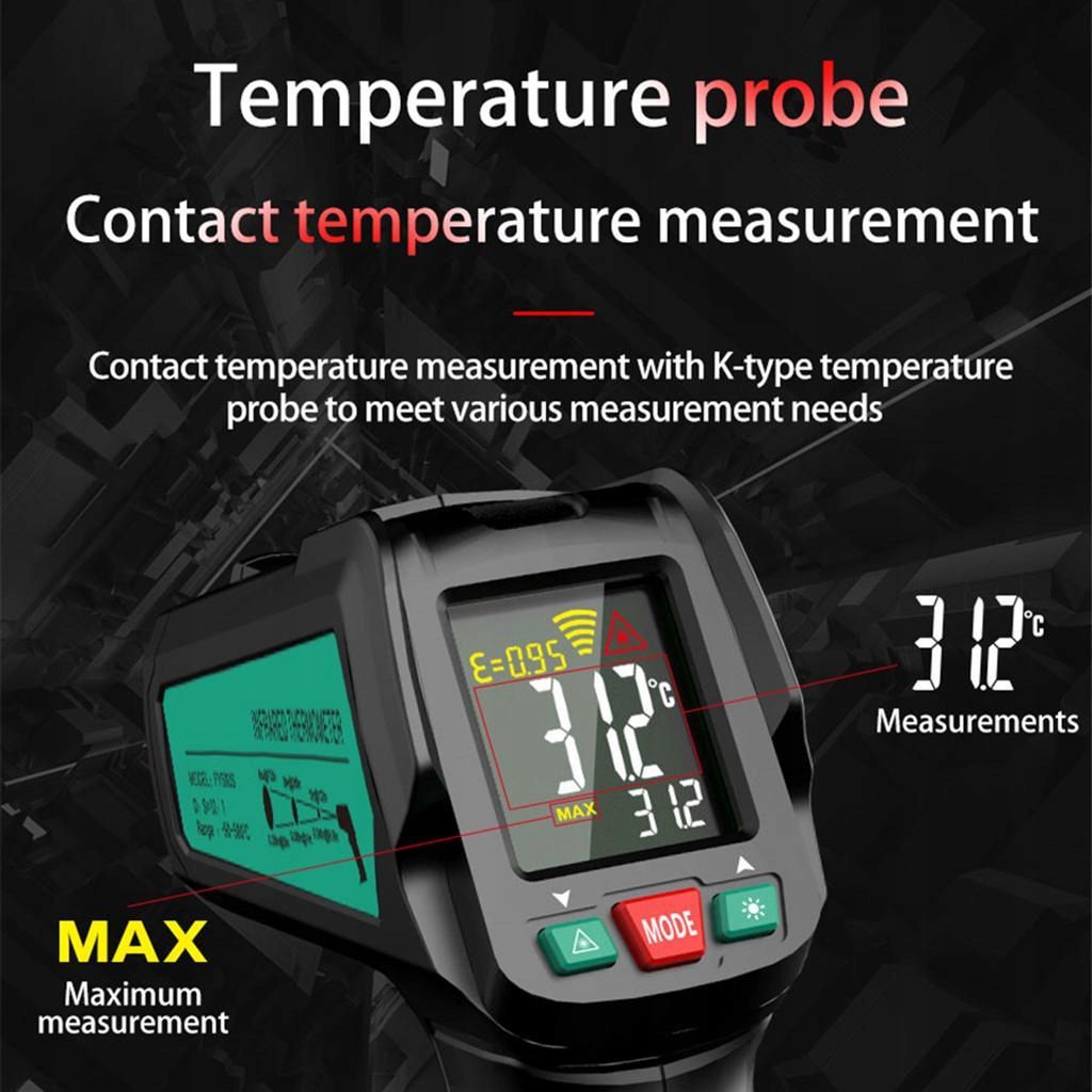 This handheld infrared thermometers can detect the surface temperature of non objects, have fast response speed, and have a wide measurement range. They are widely used in petroleum, chemical, railway and other industries, electric power, textiles, plastics, metal processing, Energy saving etc.