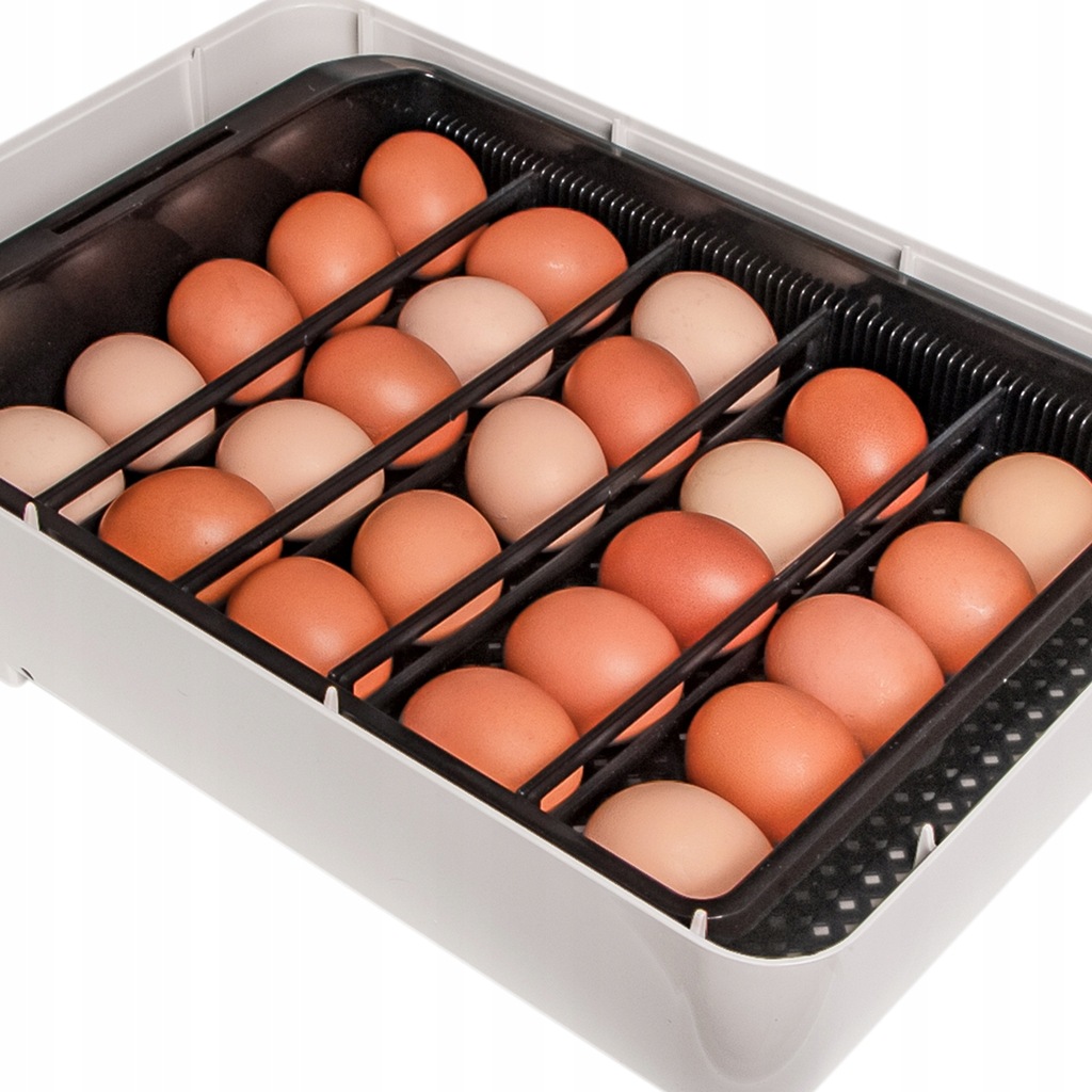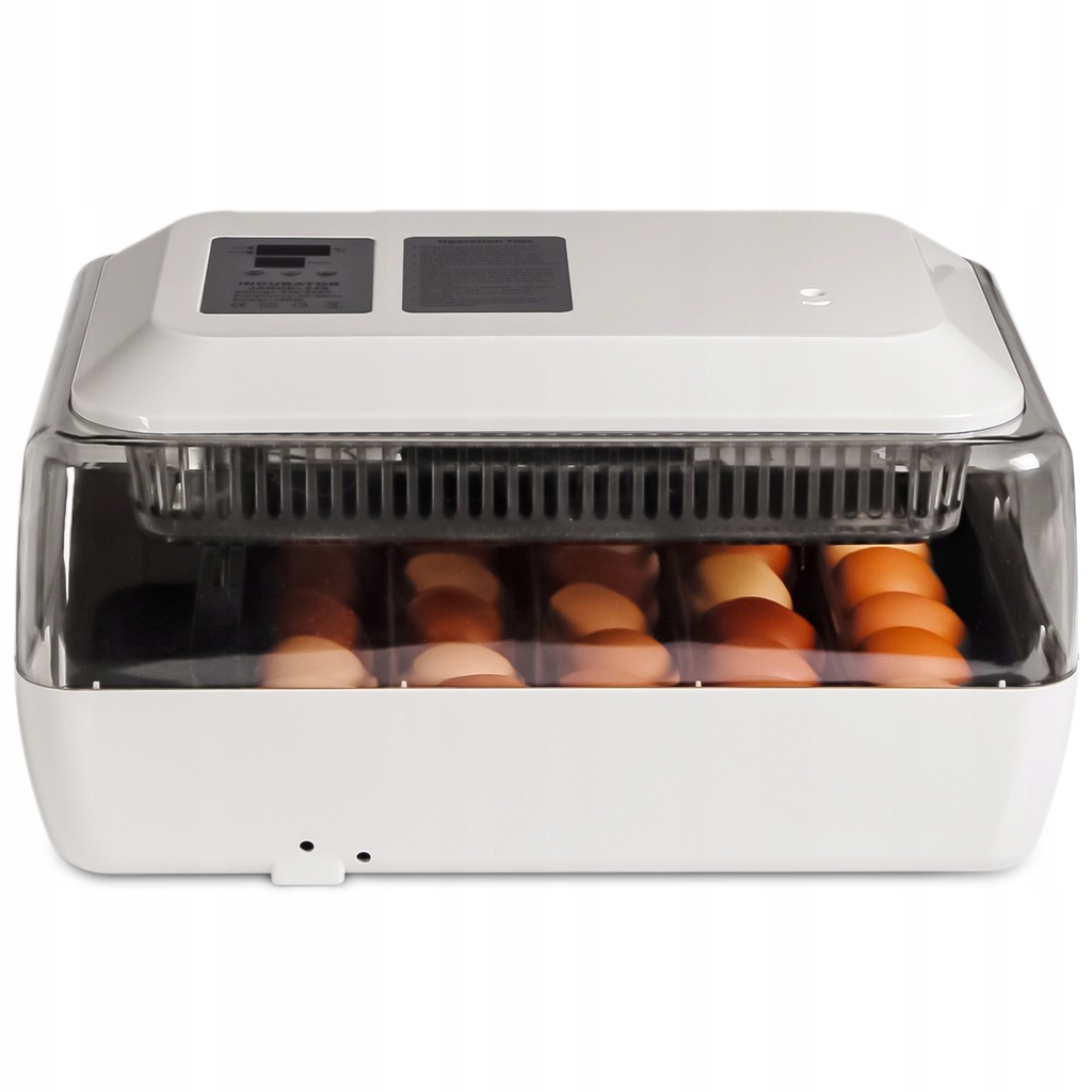 ⚡️ Inkubator jaj wyposażony jest w ogrzewanie z termostatem, który jest w pełni programowalne, termo-obieg, samoczynne automatyczne obracanie jej , pojemnik na wodę i licznik dni inkubacji.