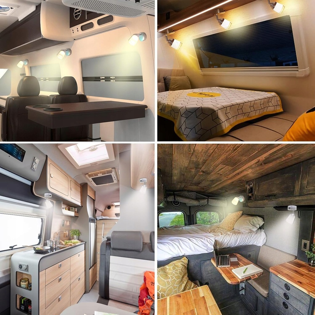 Łatwa instalacja: Czerwony kabel jest podłączony do bieguna dodatniego, czarny kabel do bieguna ujemnego. Ulepszyliśmy element dystansowy podstawy, aby był bardziej wytrzymały i niezawodny, a teraz można go również montować na metalowych ścianach. LED 12 V to nie tylko lampka do czytania, może być również używana jako przednie światło lustrzane i lampka nocna, jest szeroko stosowana w łodziach, przyczepach, statkach itp.