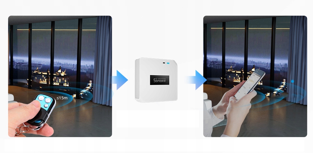 Za pomocą igentnej centralki Sonoff bez trudu zmienisz swoje urządzenia komunikujące się za pomocą transmisji radiowej 433 MHz w sprzęt wykorzystujący połączenie Wi-Fi Bez trudu dodasz je do przyjaznej użytkownikom aplikacji eWeLink Produkt jest kompatybilny między innymi z rozmaitymi przełącznikami, gniazdkami, żarówkami i czujnikami RF Możesz sparować go z 16 urządzeniami Jeden pilot z 4 przyciskami umożliwia obsługę 4 funkcji, co oznacza, że BridgeR2 pozwala dodać do aplikacji nawet 64 sprzęty!