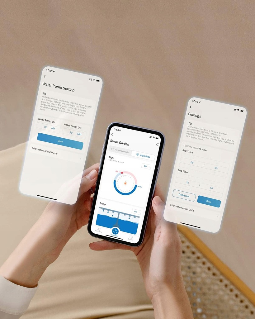 Wbudowany wentylator górny działa w cyklach, imitując naturalne warunki – pobudza fotosyntezę, pomaga w zapylaniu podczas kwitnienia i skutecznie rozprasza nadmiar ciepła w fazie kiełkowania. To rozwiązanie, które wspiera każdy etap życia rośliny.
