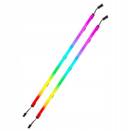 Zestawi CUE LS100 zawiera 2 długie taśmy (450 mm) mające po 27 indywidualnie adresowanych diod LED, 2 krótkie taśmy (250 mm) mające po 15 indywidualnie adresowanych diod LED, zewnętrzny kontroler podświetlenia, przewód USB oraz przewód do zasilania zewnętrznego.