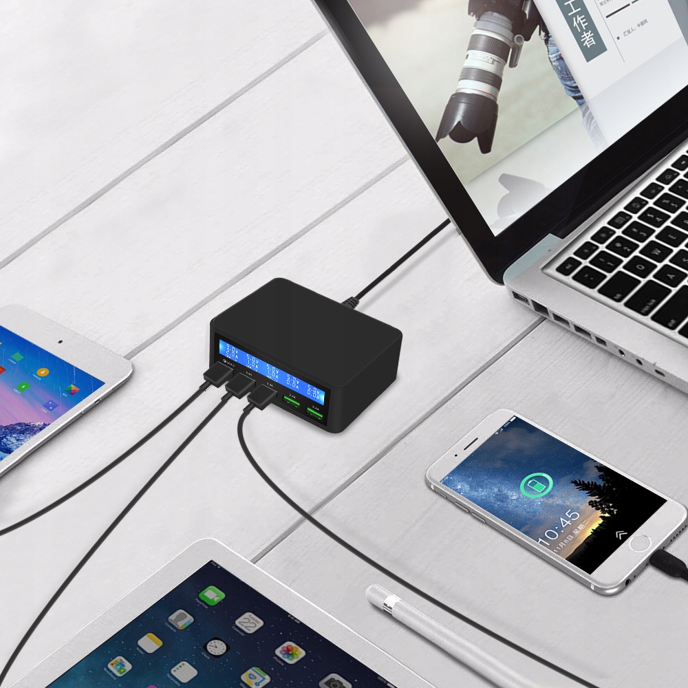 Ładowarka USB 50 W QC 3.0 z wyświetlaczem LCD, w tym 5-portowe ładowarki USB do smartphone'ów, tabletów, tabletów, telefonów komórkowych, smartfonów itp.