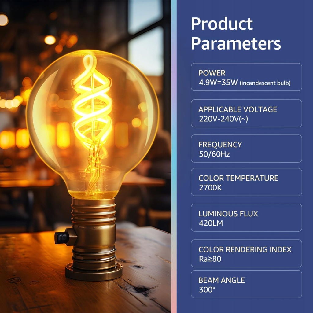 - Oszczędność energii: inteligentne żarówki Aigostar są wyposażone w technologię LED. Ta żarówka zapewnia moc 4,9 W z klasą efektywności energetycznej F, co odpowiada tradycyjnej żarówce 35 W. Bez promieniowania UV lub IR, bez migotania, są miękkie i nieszkodliwe dla oczu i skóry.