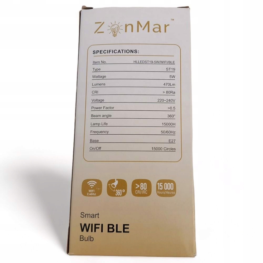 Specyfikacje: Ilość: 1szt. Marka: ZonMar Cecha szczególna: Energooszczędny Moc: 5 W Rozmiar żarówki: ST19 Temperatura barwowa: 2200-4000 K (ciepła biel i chłodna biel) Możliwość ściemniania: Tak Sterowanie: Aplikacja Smart Life, sterowanie głosowe (Google Home, Amazon Alexa) Wymiary produktu: 7,8 x 7,8 x 15,7 cm