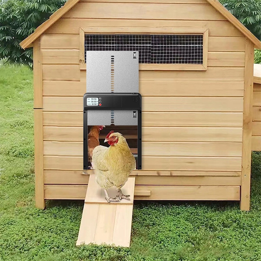 2. Wyświetlacz LED z timerem: drzwi kurnika mają wyświetlacz LED i 24-godzinny timer, możesz dostosować dzienne godziny otwierania i zamykania, z dokładnością do minuty, więc nie zawsze musisz się martwić o bezpieczeństwo swoich kurczaków.