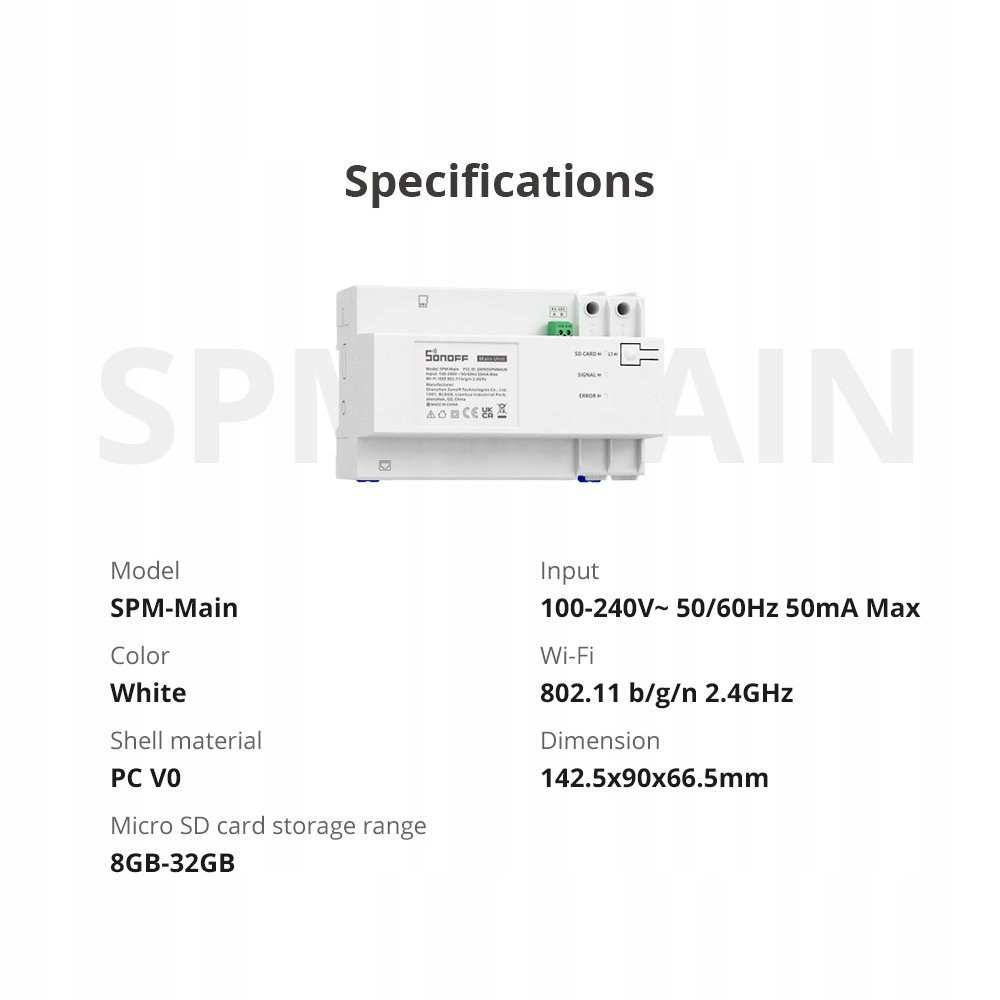 Inteligentny przełącznik Sonoff SPM-Main, który umożliwia pomiar zużycia mocy. Urządzenie jest głównym elementem systemu składającego się z SPM-Main oraz SPM-4Relay.