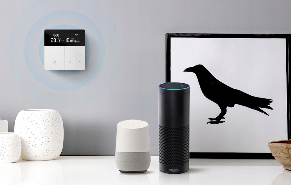 Produkt współpracuje z aplikacjami Tuya i Smart Life, które pobierzesz na smartfon lub tablet z systemami operacyjnymi Android i iOS. Dzięki temu możesz dostosować działanie produktu bez względu na to, gdzie się znajdujesz. Istnieje też możliwość kontrolowania WT50 poprzez komendy głosowe – termostat jest kompatybilny z Amazon Alexa, Google Home, Yandex Alice itp. Możesz też skorzystać z umieszczonych na urządzeniu przycisków.