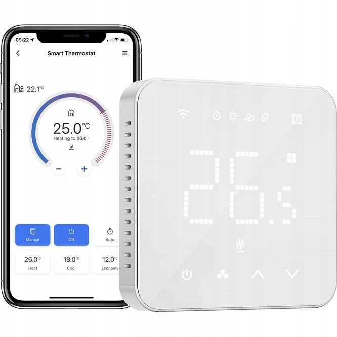 - Nie jest wymagany koncentrator: wystarczy sterować grzejnikiem za pomocą aplikacji, poleceń głosowych lub automatycznie, zgodnie z oknami czasowymi i scenariuszami. Kompatybilny z większością elektrycznych systemów ogrzewania podłogowego. Wymaga Wi-Fi o częstotliwości 2,4 GHz.