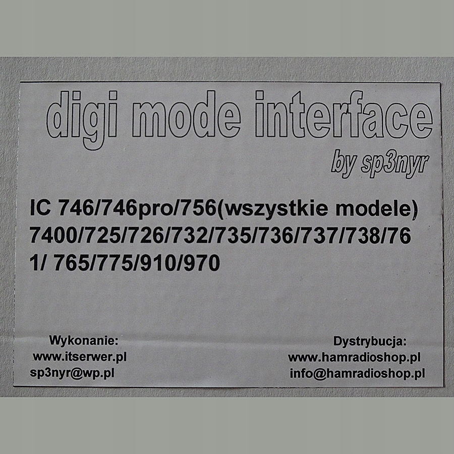 Interfejs działa z każdym programem do emisji cyfrowych jak MixW, DM780 czy JT65 Comfort i pozwala na pracę emisjami takimi jak: