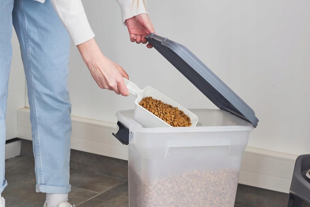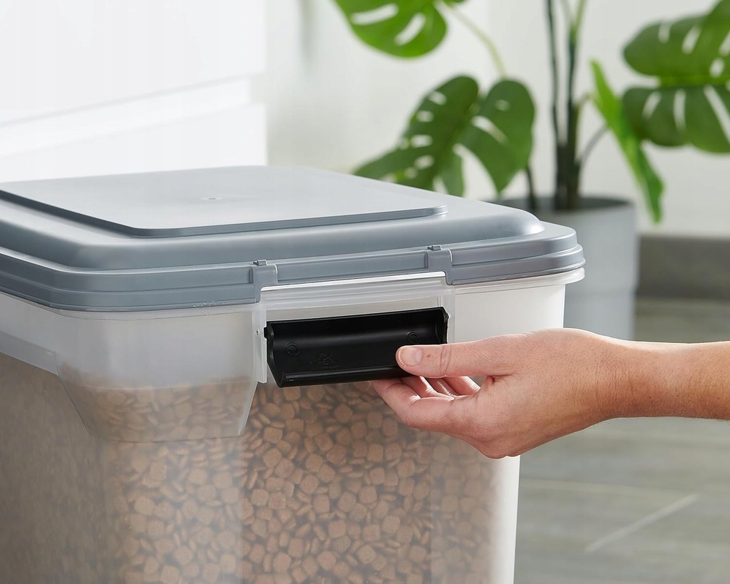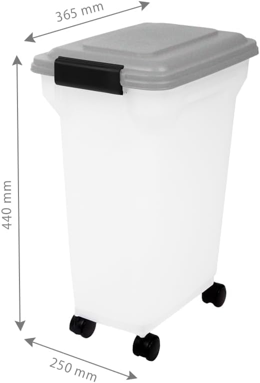 WYGODNE ROZWIĄZANIE DO PRZECHOWYWANIA: Każdy magazyn karmy dla zwierząt domowych wyposażony jest w odłączane koła, które ułatwiają przenoszenie z jednej strony na drugą bez konieczności wykonywania ciężkich czynności. UTRZYMUJE ŚWIEŻOŚĆ KARMY DLA ZWIERZĄT: Pojemnik na karmę dla zwierząt Iris Ohyama ATS-M jest wyposażony w pierścień uszczelniający, dzięki któremu karma dla zwierząt pozostaje świeża i chroniona przed parą wodną. ⚖️ MOŻLIWOŚĆ PRZECHOWYWANIA KONTENERA: Szczelny pojemnik do przechowywania karmy dla zwierząt może pomieścić do 20 litrów/7,5 kg karmy dla psa lub kota. MOŻLIWOŚCI SKARPETKI: 470ml. WYMIARY: Rozmiar zewnętrzny z pokrywą: Długość 36,5cm x Szerokość 25cm x Wysokość 44cm (Długość 14,17" x Szerokość 9,84" x Wysokość 17,32"), Rozmiar wewnętrzny: Długość 30,5cm x Szerokość 21cm x Wysokość 41cm (L 12,01" x W 8,27" x H 16,14"), Kółka/Wyspa: Długość 6,3cm x Szerokość 3,5cm; Rozmiar Scoop: (Długość 28cm x Szerokość 9,5cm x Wysokość 7cm).