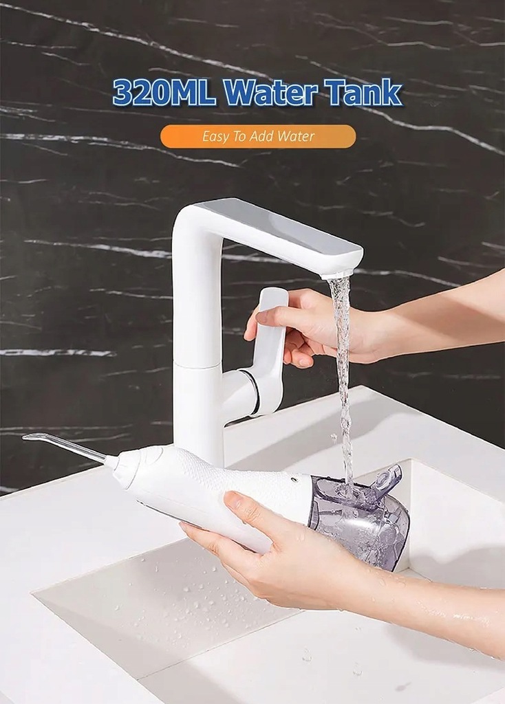 Irygator Waterpulse V580 posiada pojemnik na wodę o pojemności aż 320ml, dzięki czemu nie trzeba co chwilę napełniać urządzenia.