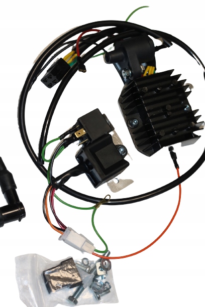 Wykonanie:-piasta koła magnesowego wykonana maszynami sterowanymi numerycznie CNC ze stali powlekana warstwą ocynku galwanicznego; piasta zintegrowana jest ze ściągaczem koła (jako ściągacz służy śruba M10- wkręcając śrubę w piastę ściągamy koło magnesowe)-dłutowany kanałek na klin/kołek ustalający-podstawka zaprojektowana w taki sposób, że idealnie pasuje w oryginalne miejsce prądnicy; wypalana laserowo z dokładnością do 0,01 mm!-przemyślany sposób regulacji kąta wyprzedzenia zapłonuJAKO JEDYNI oferujemy zapłon do motocykli ETZ 250 i ETZ 251w którym istnieje możliwość płynnej regulacji wyprzedzenia zapłonu poprzez przesuwanie impulsatora!Nie musisz ściągać koła magnesowego, wystarczy popuścić 2 śruby mocujące czujnik położenia wału i odpowiednio ustawić wyprzedzenie zapłonu-odpowiednia odległość między rdzeniami cewek, a magnesem osiągnięta dzięki zastosowanym dystansom pozwalająca zwiększyć moc ładowania i zapewniająca spasowanie elementów-zastosowany stator liczący 11 cewek w którym 10 z nich generuje prąd potrzebny do zasilenia wszystkich odbiorników elektrycznych w motocyklu-każdy z komponentów elektronicznych został wyposażony w kostki łączące dzięki którym podłączenie układu jest proste i wygodne-przemyślany sposób montażu elementów