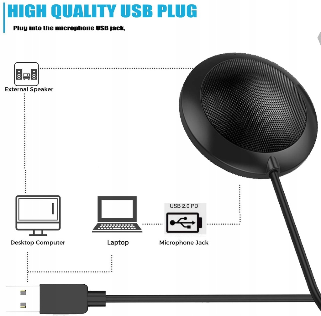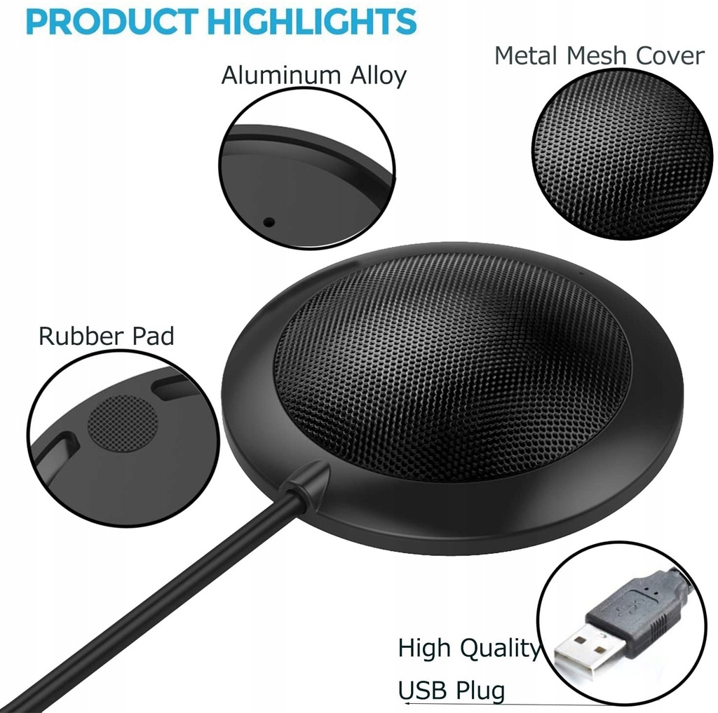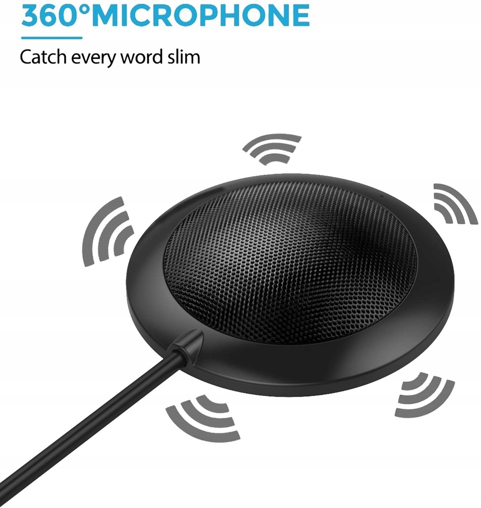 * Darmowy sterownik USB, plug-and play, a mikrofon może odbierać dźwięk z 360-stopniowego dookólnego kierunku.