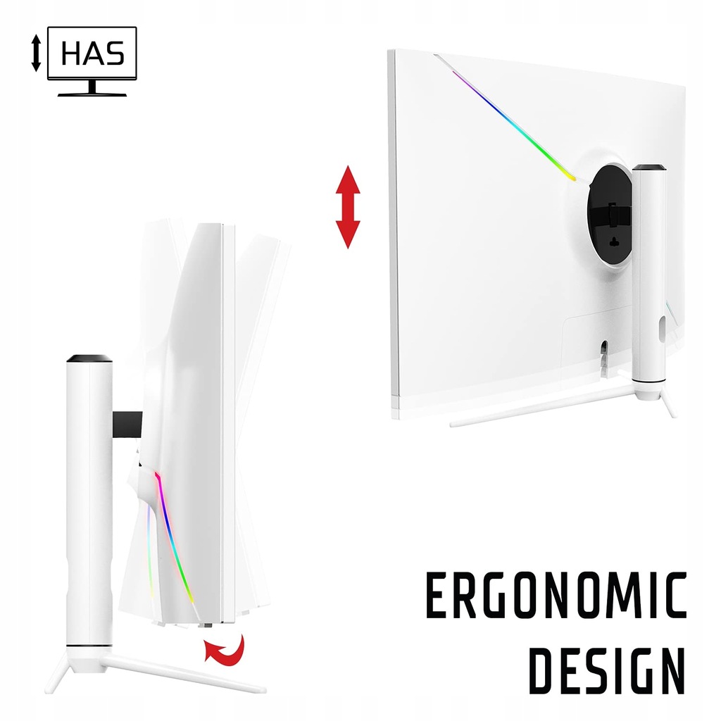 Funkcje sterownika: Monitor z Free Sync i Low Blue Light, kompatybilny z technologiami HDR-Ready i GSync, czas reakcji 1 ms, przeznaczony dla profesjonalistów i graczy poszukujących wysokiej wydajności i unikalnego designu.