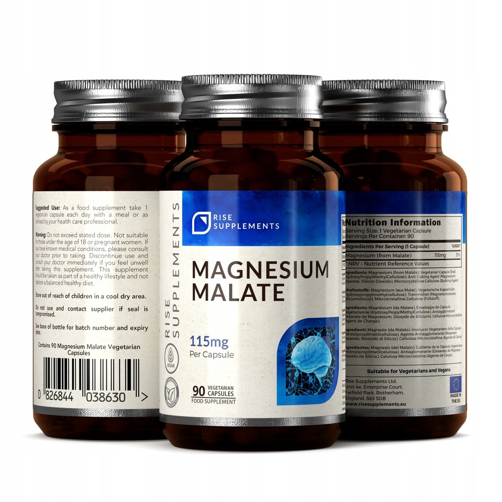 Jabłczan Magnezu (Magnesium Malate) 90 Kapsułek po 115mg - Rise Supplements ®