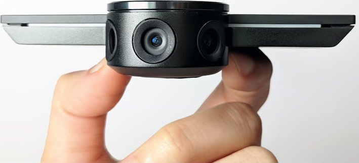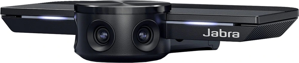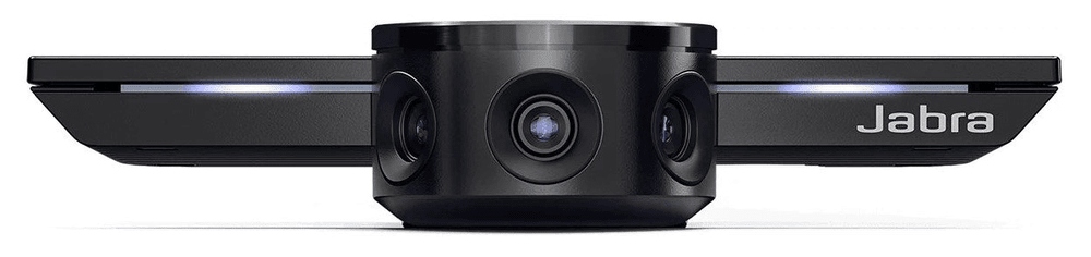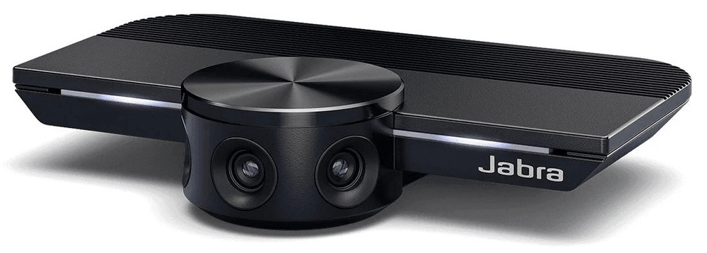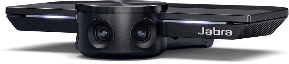 Urządzenie Jabra PanaCast ma trzy kamery stale przesyłające obraz oraz opatentowaną technologię łączenia obrazu w czasie rzeczywistym, co pozwala uzyskać 180-stopniowy obraz panoramiczny małej sali konferencyjnej w rozdzielczości 4K.