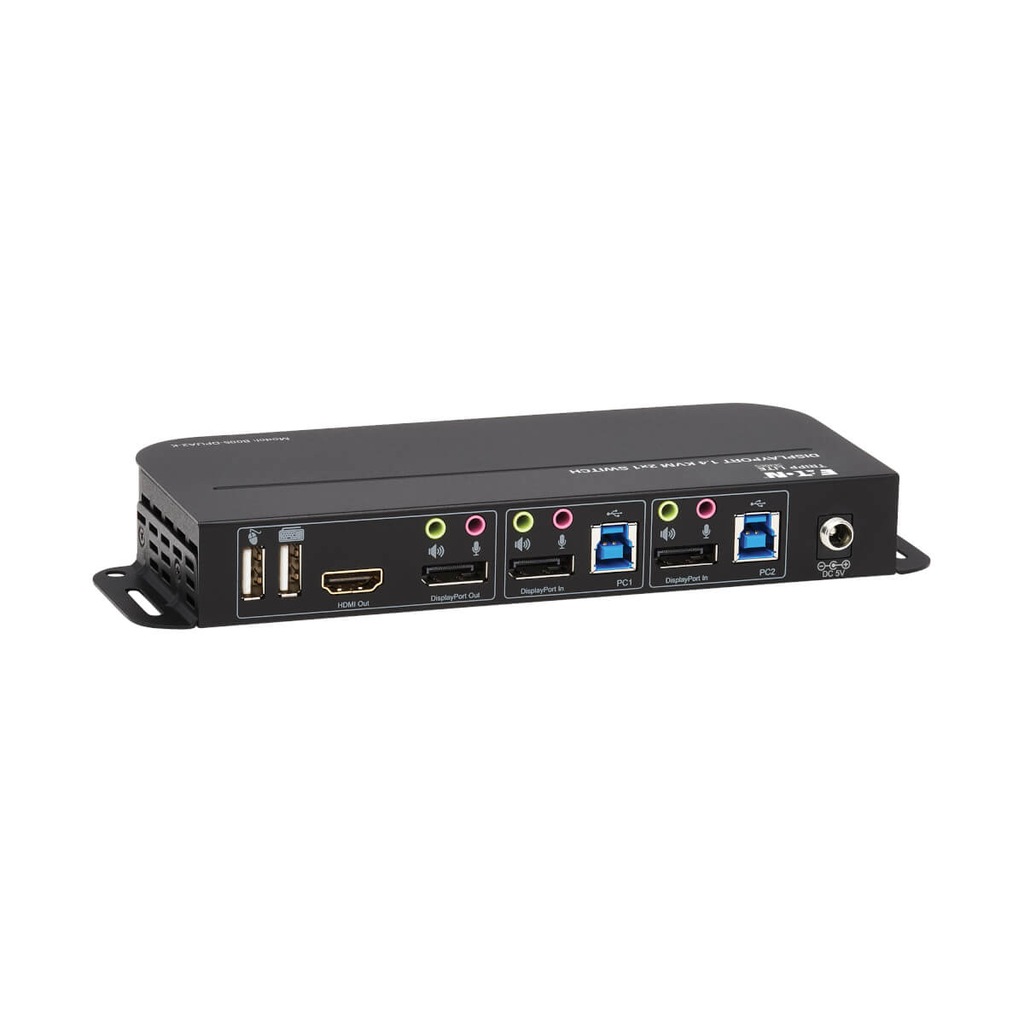 Tripp Lite B005-DPUA2-K. Rodzaj portu klawiatury: USB, Rodzaj portu myszki: USB, Rodzaj portu wideo: HDMI/DisplayPort. Typ HD: 4K Ultra HD, Maks. rozdzielczość: 4096 x 2160 px, Przepustowość wideo: 60 Hz. Kolor produktu: Czarny, Materiał obudowy: Metal, Długość kabla: 1,2 m. Źródło zasilania: Prąd przemienny, Napięcie: 100 - 240 V, Częstotliwość wejściowa AC: 50 - 60 Hz. Certyfikaty zgodności: RoHS