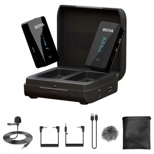 BOYA BY-XM6-S6 to dwukanałowy system mikrofonów bezprzewodowych 2,4 GHz, który składa się z dwóch nadajników i jednego odbiornika. Zapewnia wysokiej jakości dźwięk dla urządzeń mobilnych z portem USB typu C. Idealny do vlogowania, tworzenia treści, streamingu na żywo, wywiadu, nagrywania itp.