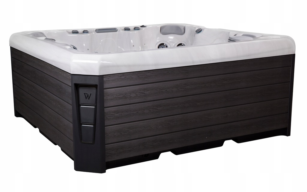 Obudowa HorizontSide™ produkowana z wytrzymałego polimeru odporna na promienie UV. Nowoczesna kolorystyka oraz drewnopodobne deski dopasują się do każdego otoczenia. Dodatkowo w narożnikach zamontowano oświetlenie LED RGB połączonym z oświetleniem wewnątrz wanny.