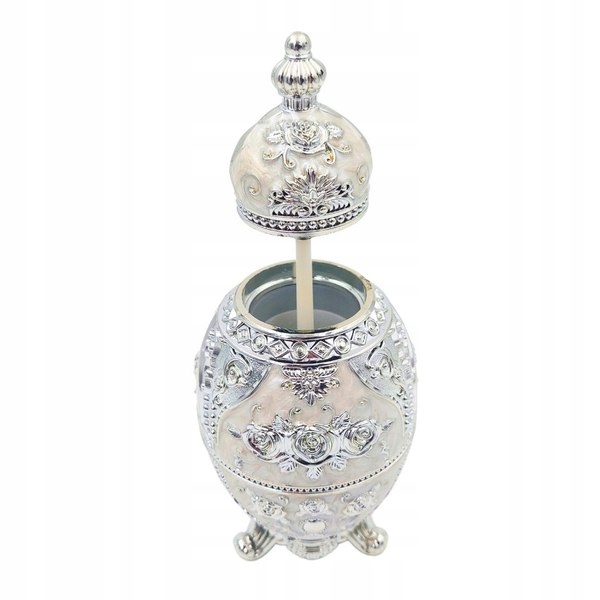 Jajo Fabergé - SRWS to wyjątkowa dekoracja o biało-srebrnym kolorze, która zachwyca bogatymi zdobieniami z motywem róży.
