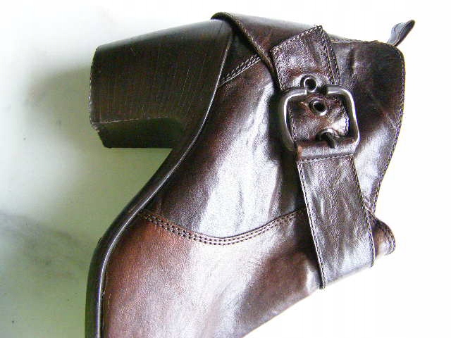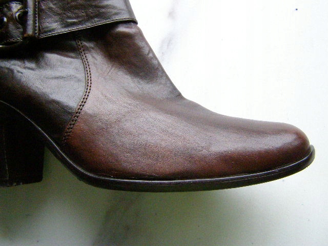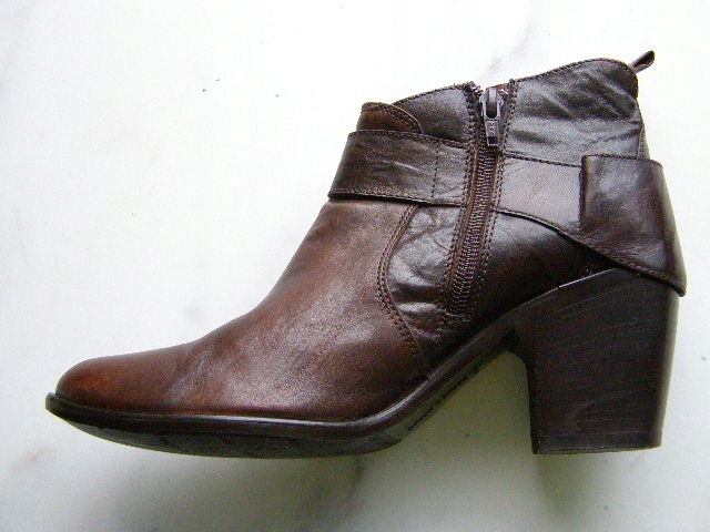 BUTY USZYTE ZOSTAŁY Z NAJLEPSZEJ LICOWEJ SKÓRY W KOLORZE BRĄZOWYM NA ODPORNEJ NA ŚCIERANIE SKÓRZANEJ PODESZWIE Z ZELÓWKĄ Z NATURALNEGO KAUCZUKU. W ŚRODKU SKÓRZANA WYŚCIÓŁKA I WKŁADKA. WYGODNY 7,5cm OBCAS. BOTKI SĄ ZAPINANE NA ZAMEK.