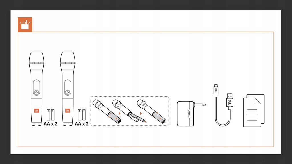 Bezprzewodowe mikrofony JBL WIRELESS MIC mają bardzo prostą konfigurację.