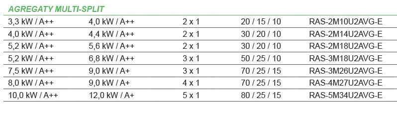 - Kod producenta: Multi Split 2:1 RAS-2M10U2AVG-E