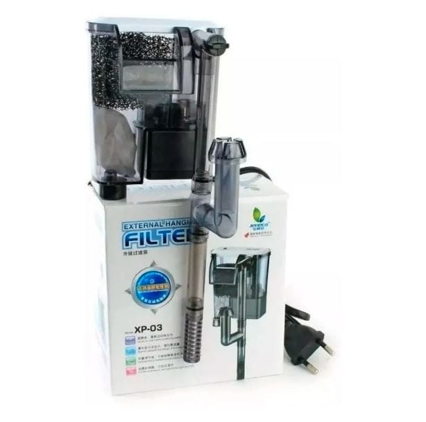 Filtry kaskadowe przeznaczone są do oczyszczania, napowietrzania i cyrkulacji wody w akwariach. Podstawa zaleta to oszczędność miejsca w samym zbiorniku. Filtr montuje się na krawędzi akwarium.Filtr XP-03 nadaje się do akwariów o pojemności do 45 l. Posiada 2 możliwości wlotu wody: od dołu oraz dodatkowo z powierzchni, dzięki zainstalowanemu SKIMMEROWI. Urządzenie pobiera wszelkie zanieczyszczenia z tafli wody.