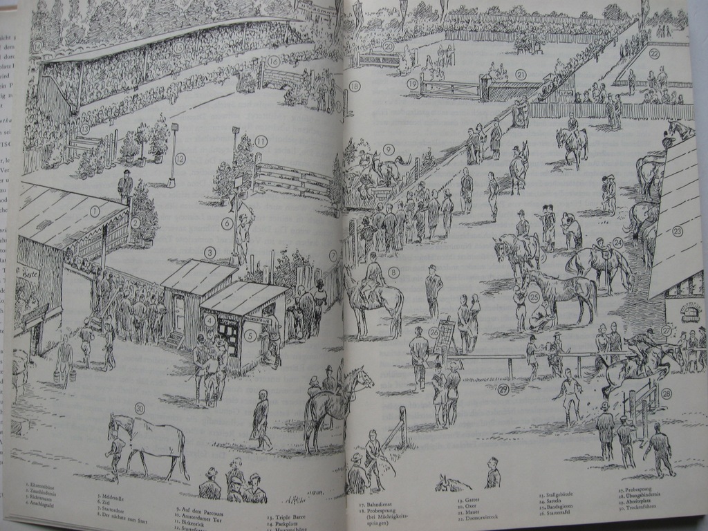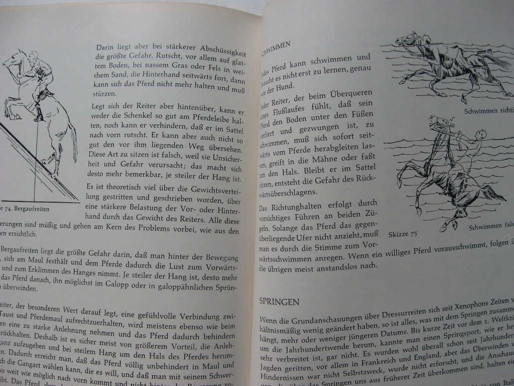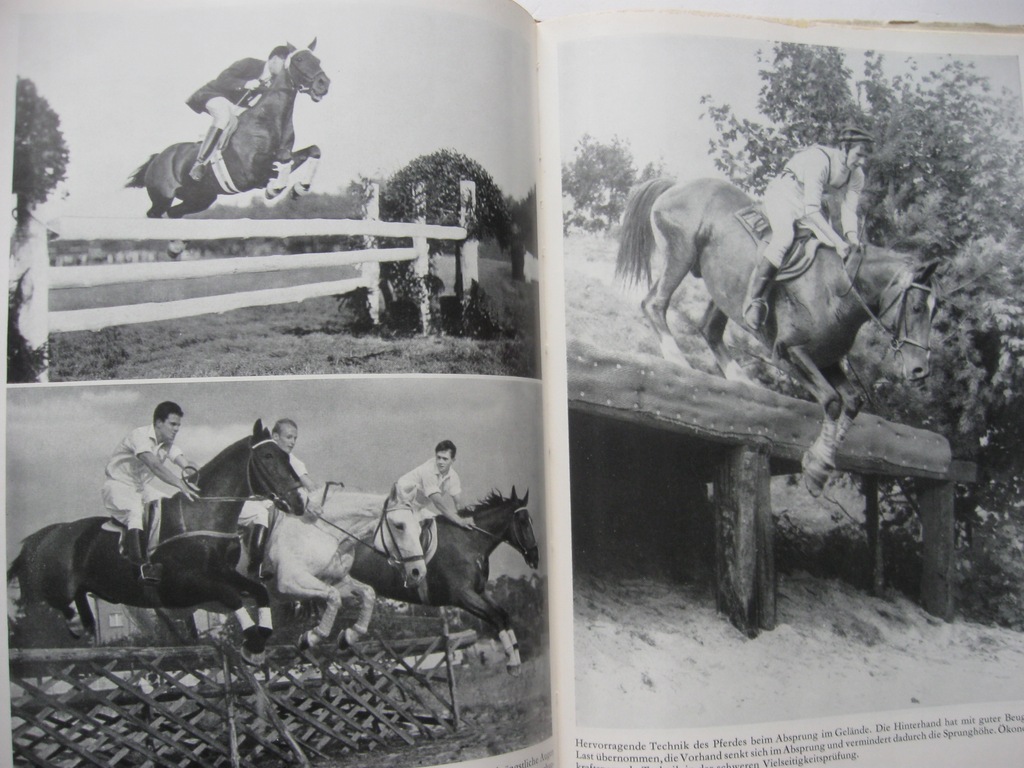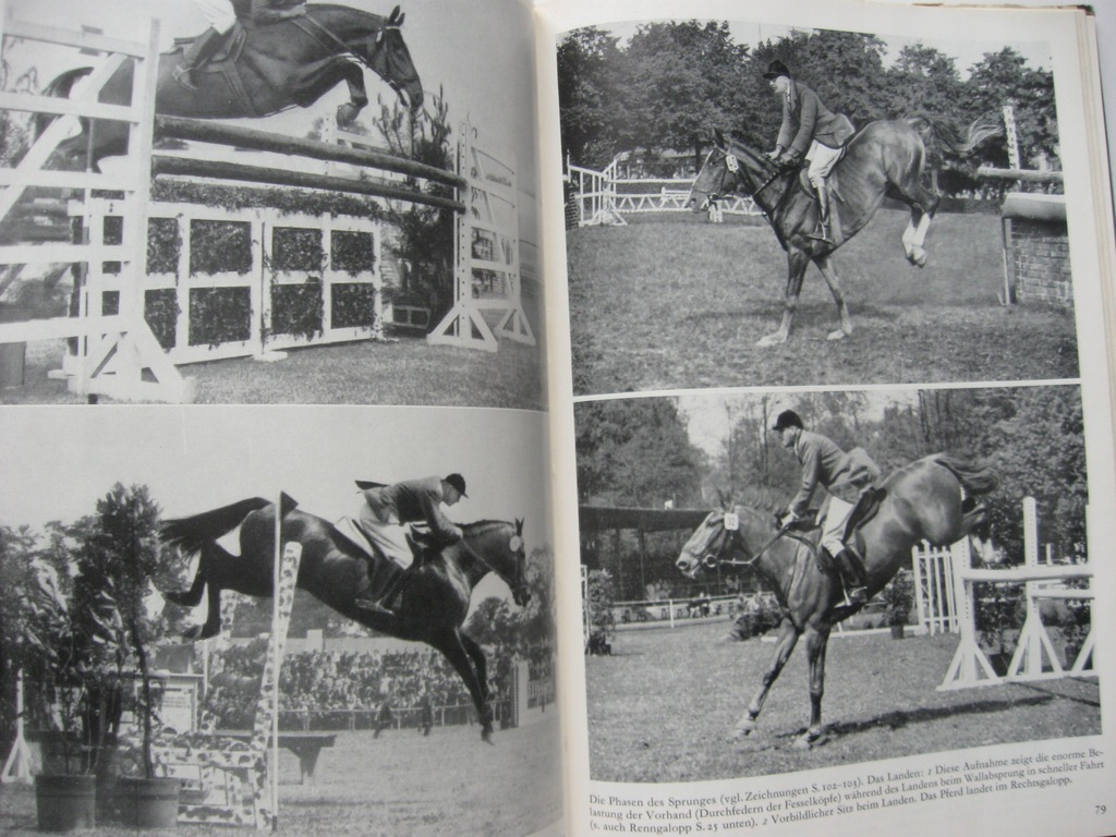 Książki w języku niemieckim dotyczą szkoły jazdy sportowej na koniu oraz skoków przez przeszkody .