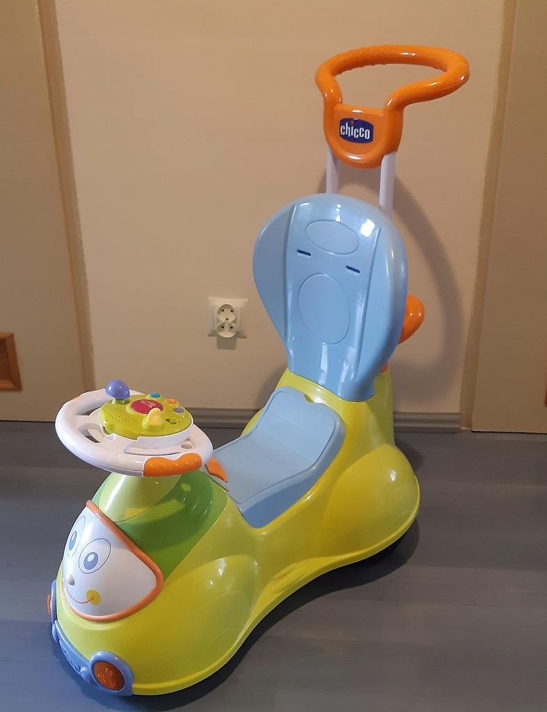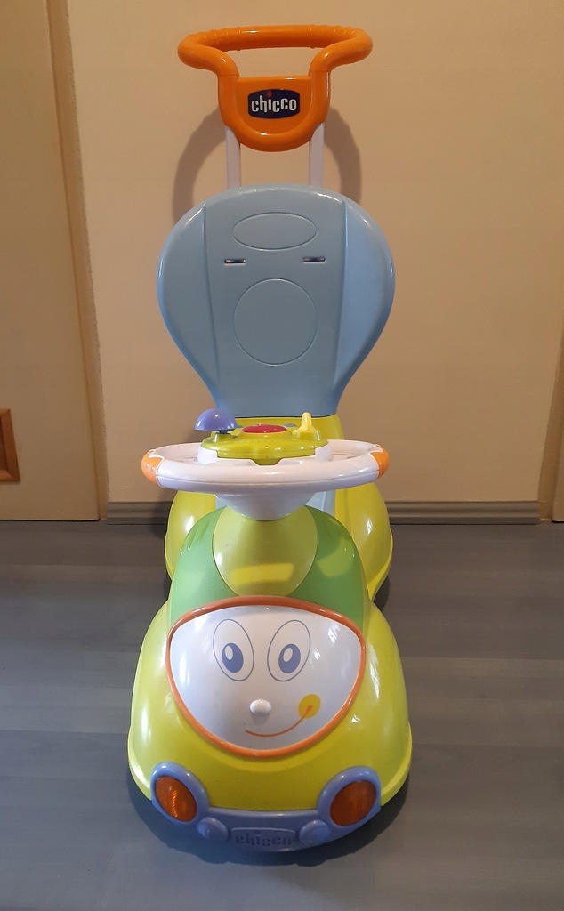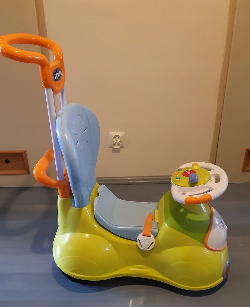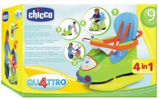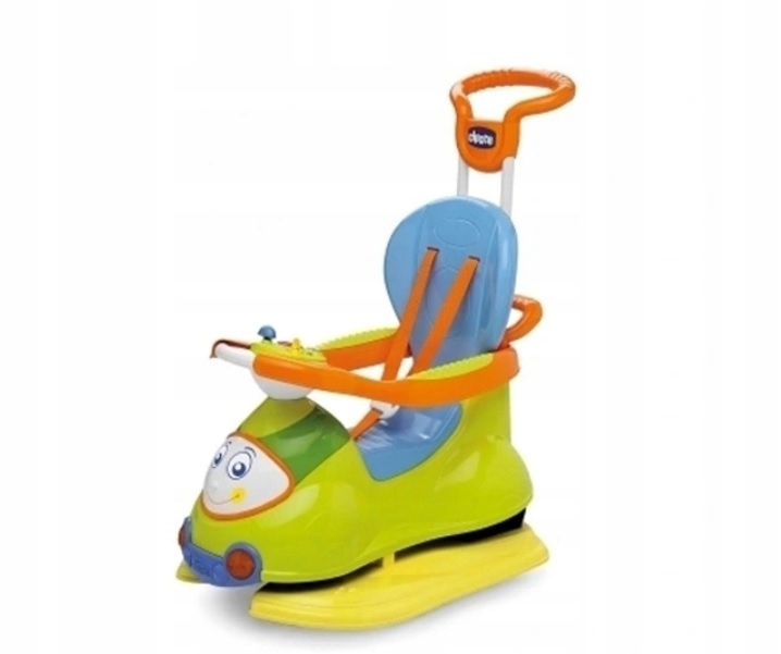 Przeznaczony jest dla dzieci od 9 do 36 miesiąca życia. Ma 4 zastosowania w zależności od etapu rozwoju dziecka. Z myślą o najmłodszych do zabawki można zamontować stabilną bazę-bujak, a bezpieczeństwo malucha zapewni barierka ochronna i pasy bezpieczeństwa. Po zdjęciu bazy, rodzice mogę prowadzić jeździdełko trzymając za specjalna rączkę. Jeździdło jest też doskonałe dla maluszków stawiających pierwsze kroki.